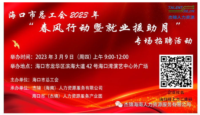 6月24日上午9時-12時,由海口市龍華區人力資源和社會保障局、??谑校埲A)人力資源服務產業園主辦,杰...
